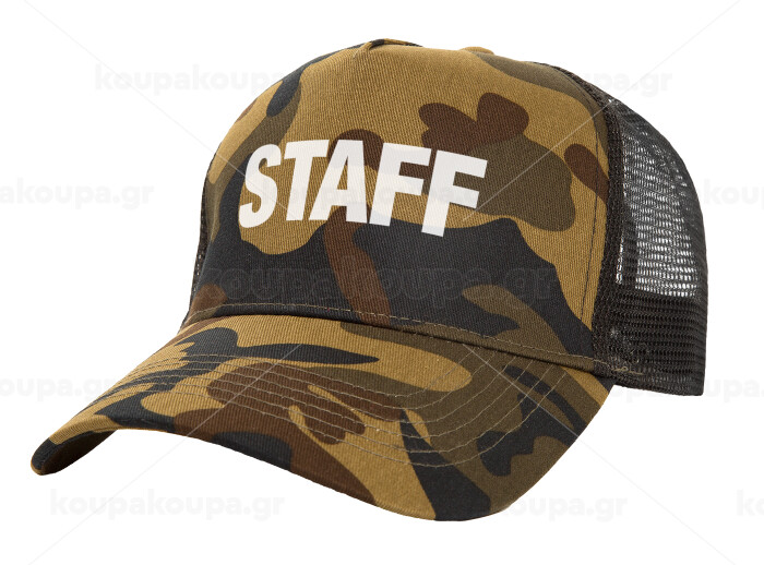Staff, Adult Structured Trucker Hat, with Mesh, (Camouflage) Army (100% COTTON, ADULT, UNISEX, ONE SIZE)