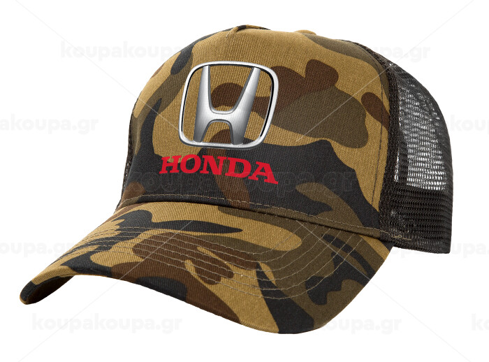 HONDA, Adult Structured Trucker Hat, with Mesh, (Camouflage) Army (100% COTTON, ADULT, UNISEX, ONE SIZE)