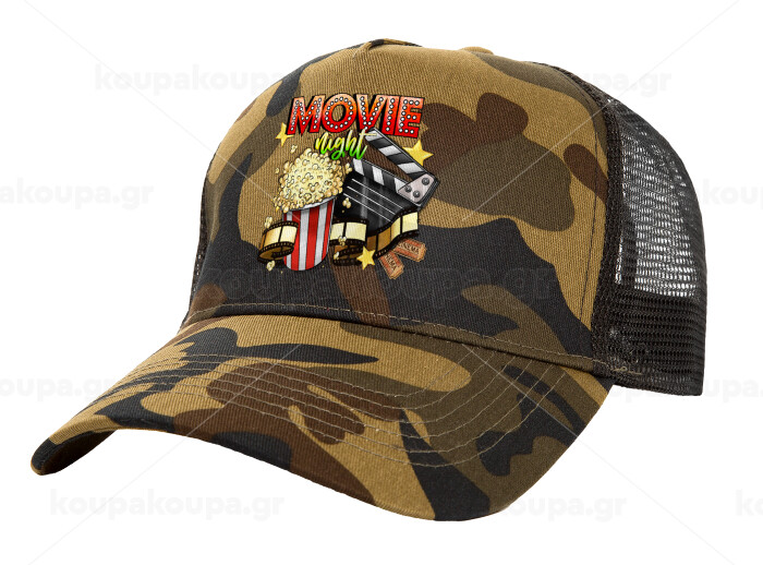 Movie night, Adult Structured Trucker Hat, with Mesh, (Camouflage) Army (100% COTTON, ADULT, UNISEX, ONE SIZE)
