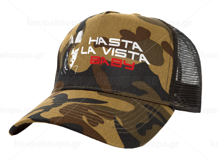 Terminator Hasta La Vista, Adult Structured Trucker Hat, with Mesh, (Camouflage) Army (100% COTTON, ADULT, UNISEX, ONE SIZE)