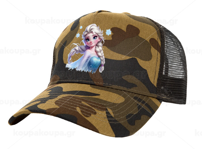 Elsa Princess, Adult Structured Trucker Hat, with Mesh, (Camouflage) Army (100% COTTON, ADULT, UNISEX, ONE SIZE)