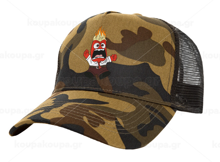Inside Out Angry, Adult Structured Trucker Hat, with Mesh, (Camouflage) Army (100% COTTON, ADULT, UNISEX, ONE SIZE)