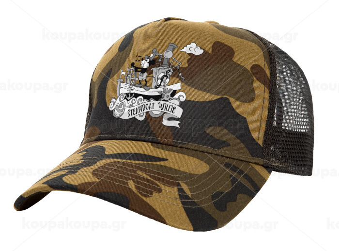 Mickey steamboat, Adult Structured Trucker Hat, with Mesh, (Camouflage) Army (100% COTTON, ADULT, UNISEX, ONE SIZE)