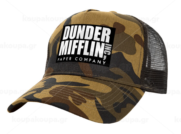 Dunder Mifflin, Inc Paper Company, Adult Structured Trucker Hat, with Mesh, (Camouflage) Army (100% COTTON, ADULT, UNISEX, ONE SIZE)