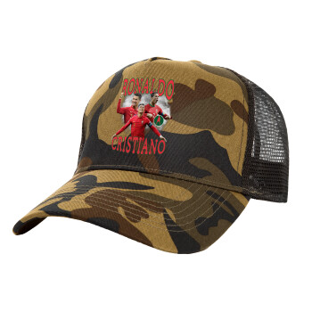 Cristiano Ronaldo, Adult Structured Trucker Hat, with Mesh, (Camouflage) Army (100% COTTON, ADULT, UNISEX, ONE SIZE)