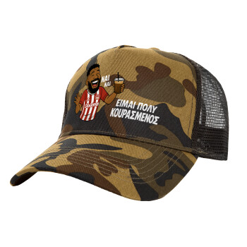 Ροντινέι, "ΠΟΛΥ ΚΟΥΡΑΣΜΕΝΟΣ", Adult Structured Trucker Hat, with Mesh, (Camouflage) Army (100% COTTON, ADULT, UNISEX, ONE SIZE)