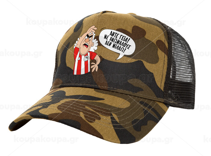 Τάκης, Άντε γεια, με ανώμαλους δεν μιλάω!, Adult Structured Trucker Hat, with Mesh, (Camouflage) Army (100% COTTON, ADULT, UNISEX, ONE SIZE)