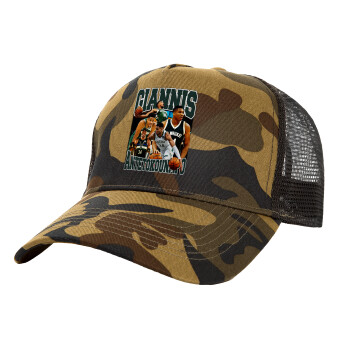 Giannis Antetokounmpo, Adult Structured Trucker Hat, with Mesh, (Camouflage) Army (100% COTTON, ADULT, UNISEX, ONE SIZE)