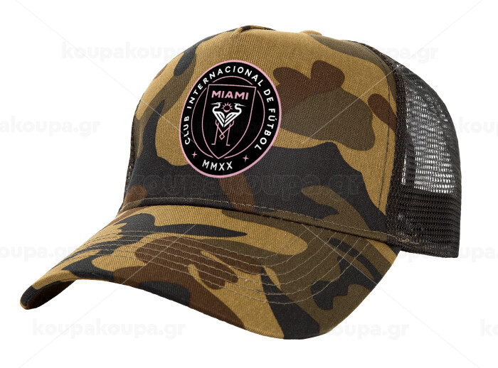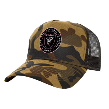 Inter Miami CF, Adult Structured Trucker Hat, with Mesh, (Camouflage) Army (100% COTTON, ADULT, UNISEX, ONE SIZE)