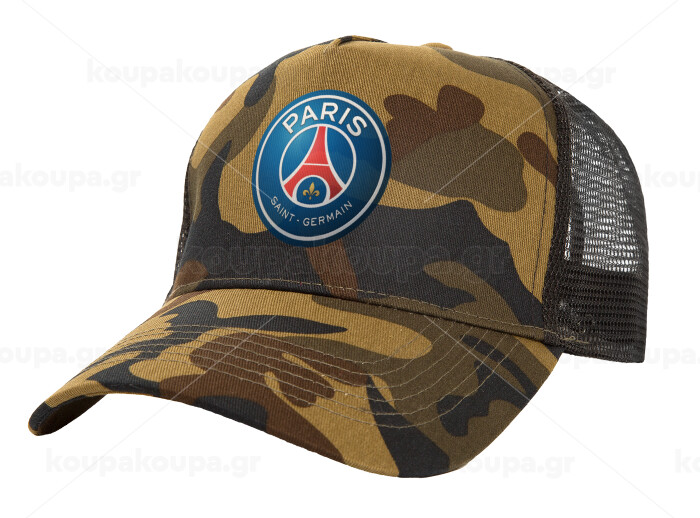 Paris Saint-Germain F.C., Adult Structured Trucker Hat, with Mesh, (Camouflage) Army (100% COTTON, ADULT, UNISEX, ONE SIZE)
