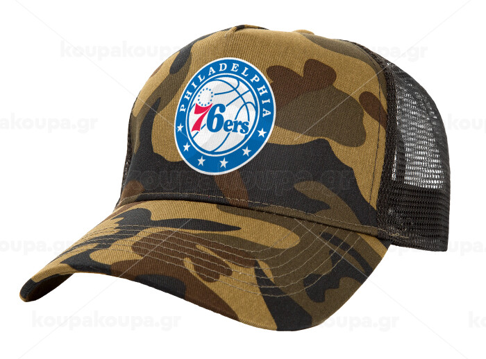Philadelphia 76ers, Adult Structured Trucker Hat, with Mesh, (Camouflage) Army (100% COTTON, ADULT, UNISEX, ONE SIZE)