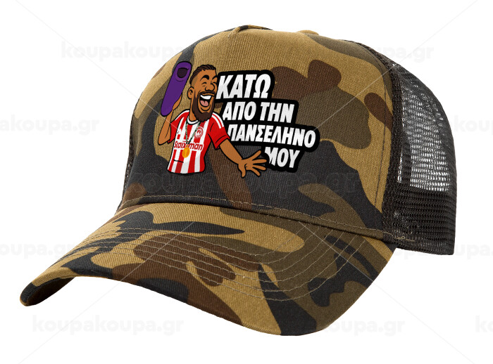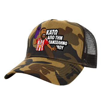 Ροντινέι, "ΚΑΤΩ ΑΠΟ ΤΗΝ ΠΑΝΣΕΛΗΝΟ ΜΟΥ!", Adult Structured Trucker Hat, with Mesh, (Camouflage) Army (100% COTTON, ADULT, UNISEX, ONE SIZE)