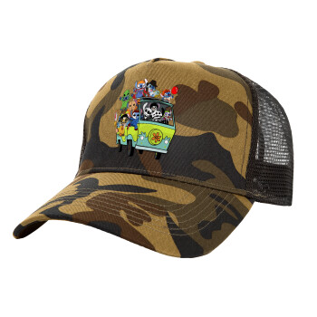 Stitch Halloween scooby car, Adult Structured Trucker Hat, with Mesh, (Camouflage) Army (100% COTTON, ADULT, UNISEX, ONE SIZE)
