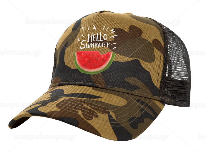Summer Watermelon, Adult Structured Trucker Hat, with Mesh, (Camouflage) Army (100% COTTON, ADULT, UNISEX, ONE SIZE)