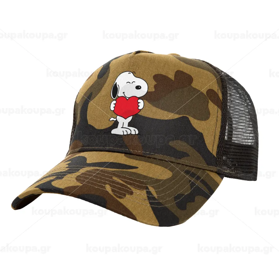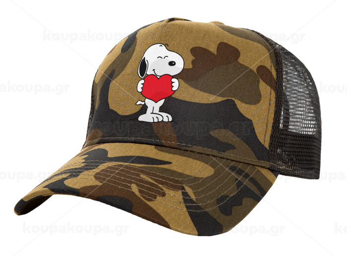 Snoopy takemy heart, Adult Structured Trucker Hat, with Mesh, (Camouflage) Army (100% COTTON, ADULT, UNISEX, ONE SIZE)