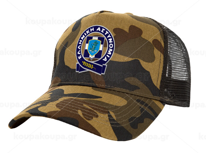 Ελληνική Αστυνομία, Adult Structured Trucker Hat, with Mesh, (Camouflage) Army (100% COTTON, ADULT, UNISEX, ONE SIZE)