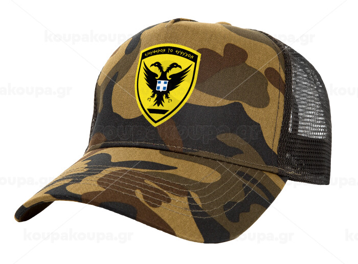Ελληνικός Στρατός, Adult Structured Trucker Hat, with Mesh, (Camouflage) Army (100% COTTON, ADULT, UNISEX, ONE SIZE)