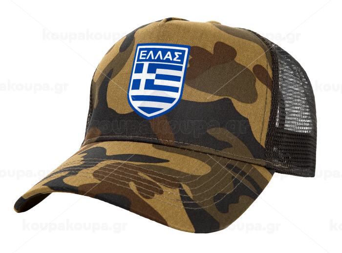 Hellas, Adult Structured Trucker Hat, with Mesh, (Camouflage) Army (100% COTTON, ADULT, UNISEX, ONE SIZE)
