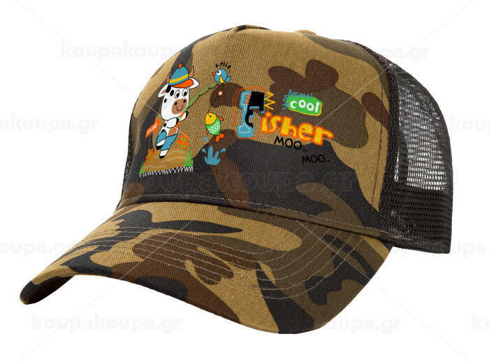 Kids Fisherman, Adult Structured Trucker Hat, with Mesh, (Camouflage) Army (100% COTTON, ADULT, UNISEX, ONE SIZE)