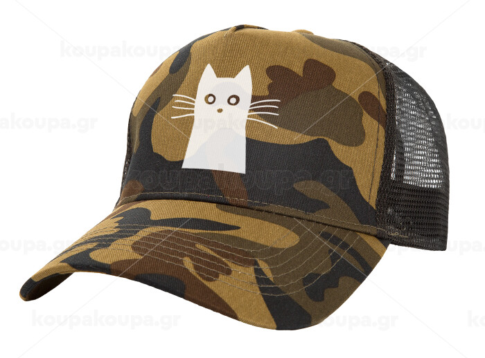 Black Cat, Adult Structured Trucker Hat, with Mesh, (Camouflage) Army (100% COTTON, ADULT, UNISEX, ONE SIZE)
