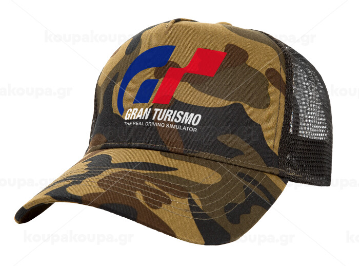 gran turismo, Adult Structured Trucker Hat, with Mesh, (Camouflage) Army (100% COTTON, ADULT, UNISEX, ONE SIZE)