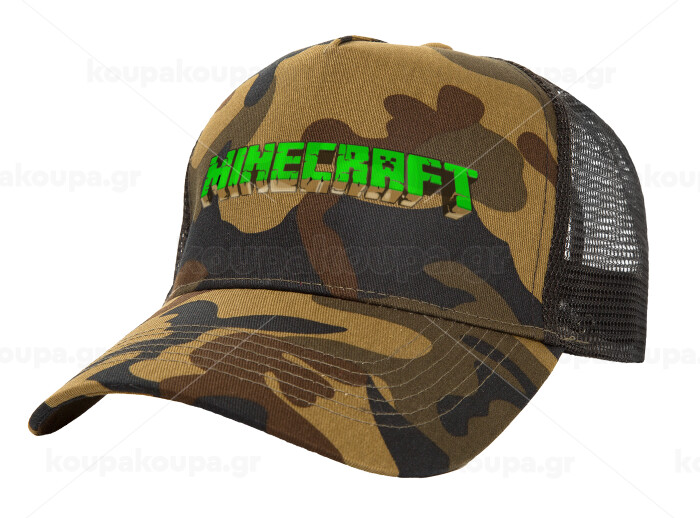 Minecraft logo green, Adult Structured Trucker Hat, with Mesh, (Camouflage) Army (100% COTTON, ADULT, UNISEX, ONE SIZE)