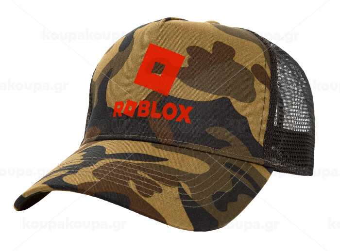 Roblox red, Adult Structured Trucker Hat, with Mesh, (Camouflage) Army (100% COTTON, ADULT, UNISEX, ONE SIZE)