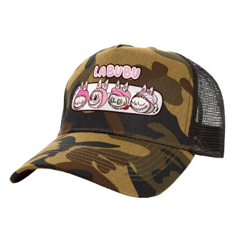 Labubu pink, Adult Structured Trucker Hat, with Mesh, (Camouflage) Army (100% COTTON, ADULT, UNISEX, ONE SIZE)