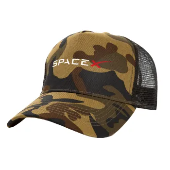 Space X, Adult Structured Trucker Hat, with Mesh, (Camouflage) Army (100% COTTON, ADULT, UNISEX, ONE SIZE)