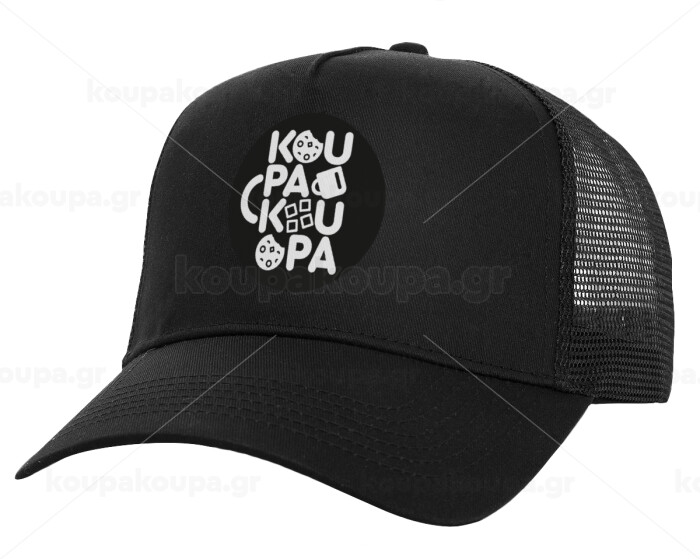 koupakoupa, Structured Trucker Adult Hat, with Mesh, Black (100% COTTON, ADULT, UNISEX, ONE SIZE)