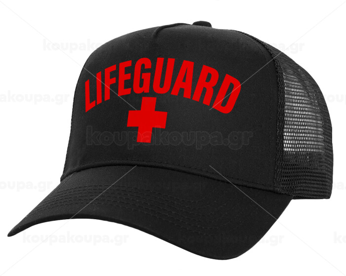 Lifeguard, Structured Trucker Adult Hat, with Mesh, Black (100% COTTON, ADULT, UNISEX, ONE SIZE)