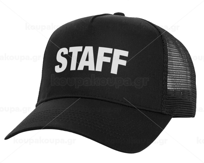 Staff, Structured Trucker Adult Hat, with Mesh, Black (100% COTTON, ADULT, UNISEX, ONE SIZE)
