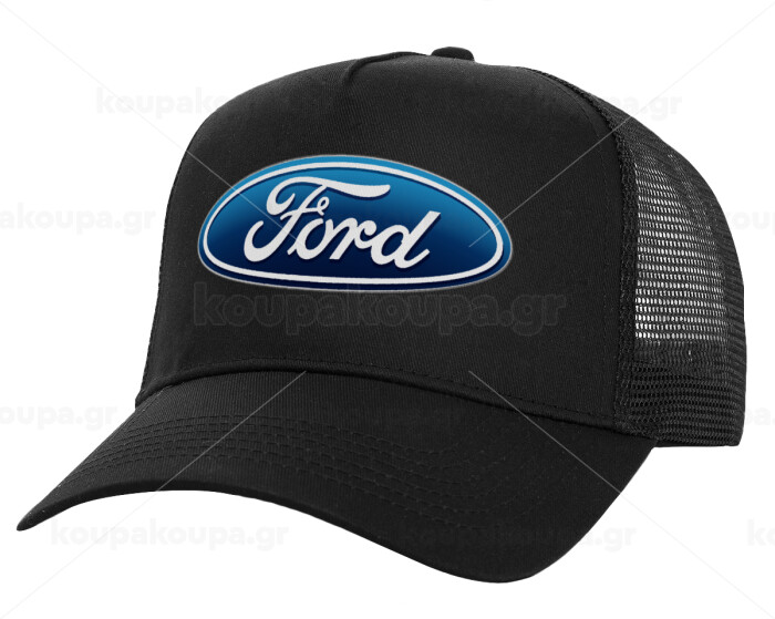 Ford, Structured Trucker Adult Hat, with Mesh, Black (100% COTTON, ADULT, UNISEX, ONE SIZE)
