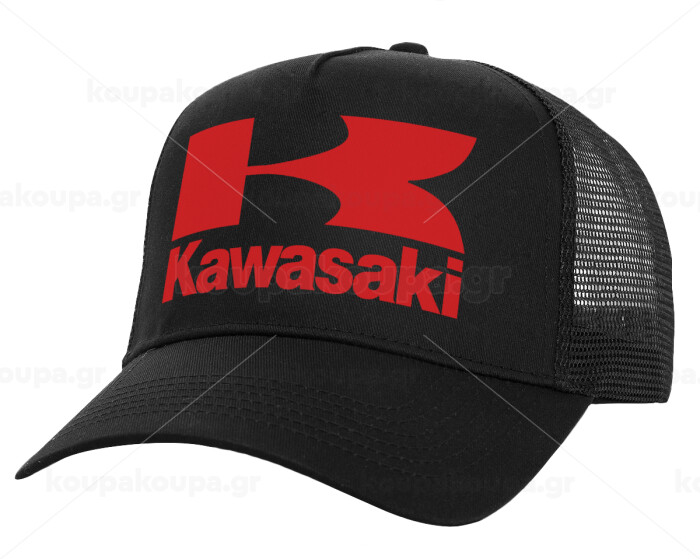 Kawasaki, Structured Trucker Adult Hat, with Mesh, Black (100% COTTON, ADULT, UNISEX, ONE SIZE)