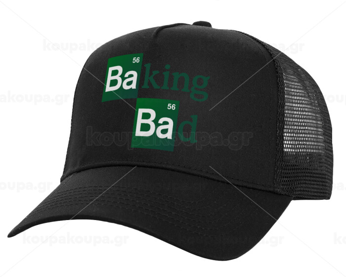 Baking Bad, Structured Trucker Adult Hat, with Mesh, Black (100% COTTON, ADULT, UNISEX, ONE SIZE)