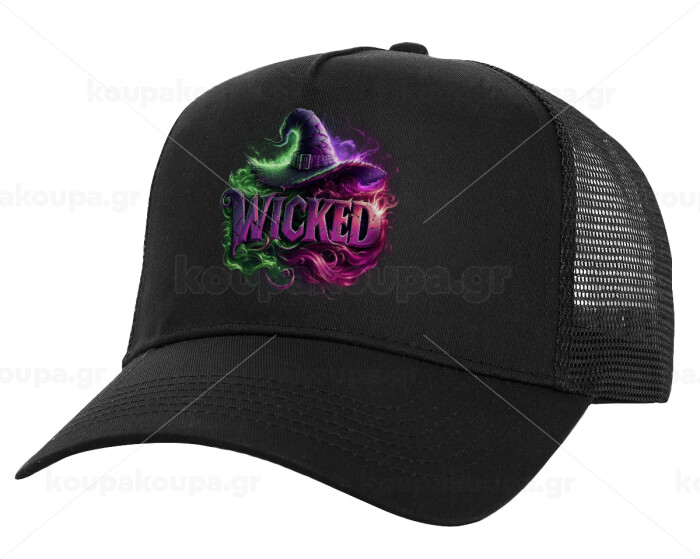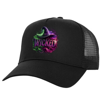 Wicked, Structured Trucker Adult Hat, with Mesh, Black (100% COTTON, ADULT, UNISEX, ONE SIZE)