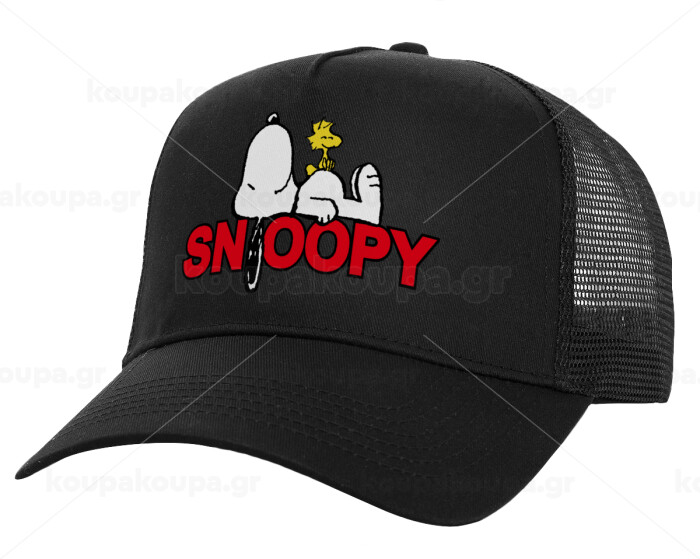 Snoopy sleep, Structured Trucker Adult Hat, with Mesh, Black (100% COTTON, ADULT, UNISEX, ONE SIZE)