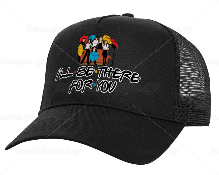 Friends cover, Structured Trucker Adult Hat, with Mesh, Black (100% COTTON, ADULT, UNISEX, ONE SIZE)