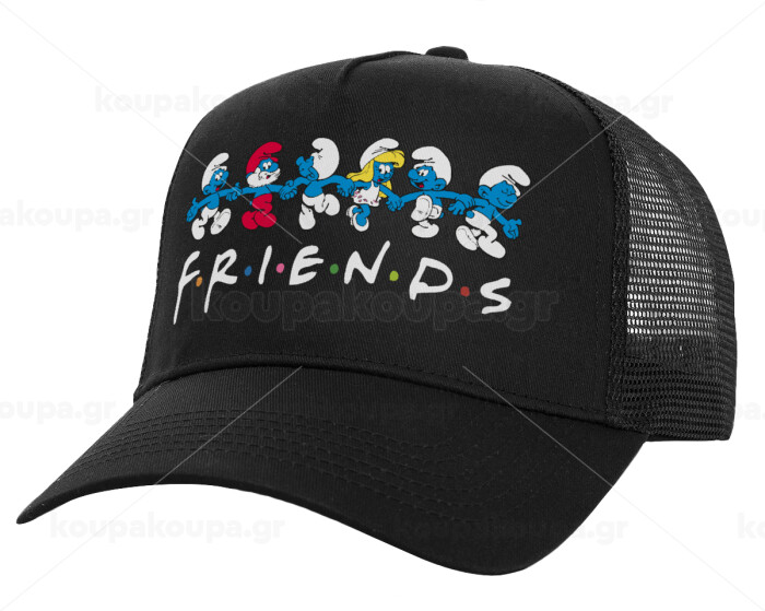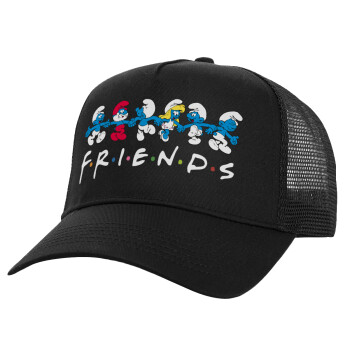 Friends Smurfs, Structured Trucker Adult Hat, with Mesh, Black (100% COTTON, ADULT, UNISEX, ONE SIZE)