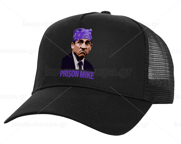 Prison Mike The office, Structured Trucker Adult Hat, with Mesh, Black (100% COTTON, ADULT, UNISEX, ONE SIZE)