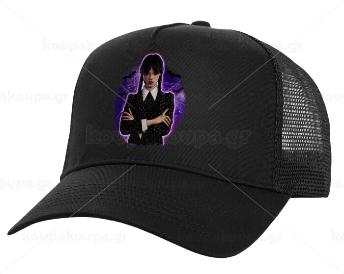 Wednesday moonlight, Structured Trucker Adult Hat, with Mesh, Black (100% COTTON, ADULT, UNISEX, ONE SIZE)