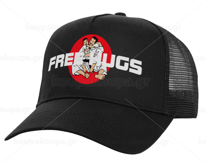 JUDO free hugs, Structured Trucker Adult Hat, with Mesh, Black (100% COTTON, ADULT, UNISEX, ONE SIZE)