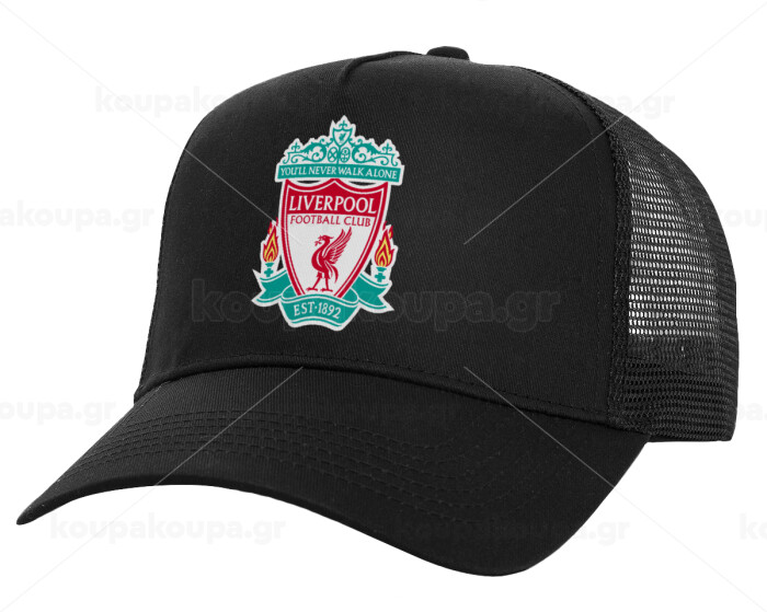 Liverpool, Structured Trucker Adult Hat, with Mesh, Black (100% COTTON, ADULT, UNISEX, ONE SIZE)