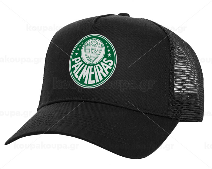 Palmeiras, Structured Trucker Adult Hat, with Mesh, Black (100% COTTON, ADULT, UNISEX, ONE SIZE)