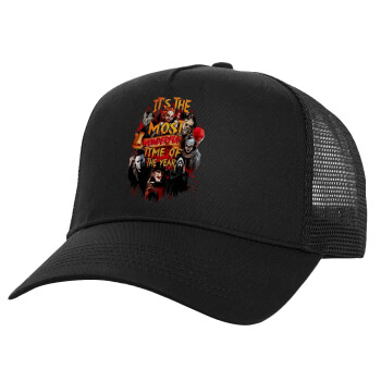 Halloween it's most wonderful time of the year, Structured Trucker Adult Hat, with Mesh, Black (100% COTTON, ADULT, UNISEX, ONE SIZE)