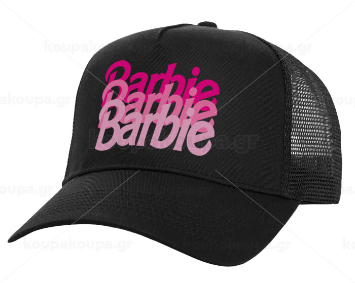 Barbie repeat, Structured Trucker Adult Hat, with Mesh, Black (100% COTTON, ADULT, UNISEX, ONE SIZE)