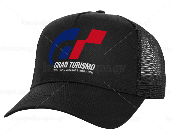 gran turismo, Structured Trucker Adult Hat, with Mesh, Black (100% COTTON, ADULT, UNISEX, ONE SIZE)