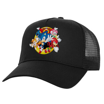 Sonic and friends, Structured Trucker Adult Hat, with Mesh, Black (100% COTTON, ADULT, UNISEX, ONE SIZE)