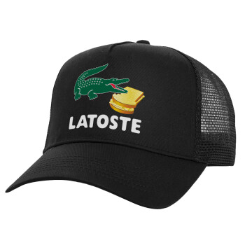 Latoste, Structured Trucker Adult Hat, with Mesh, Black (100% COTTON, ADULT, UNISEX, ONE SIZE)