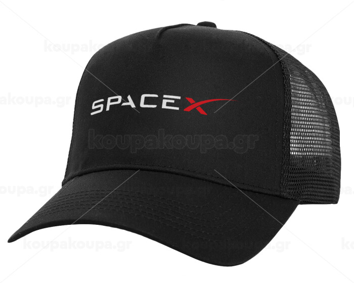 Space X, Structured Trucker Adult Hat, with Mesh, Black (100% COTTON, ADULT, UNISEX, ONE SIZE)